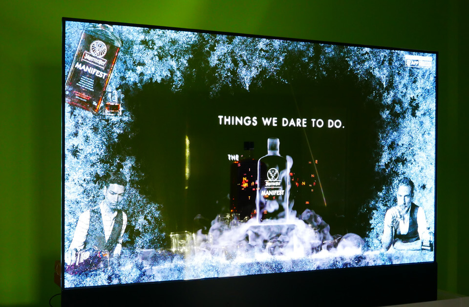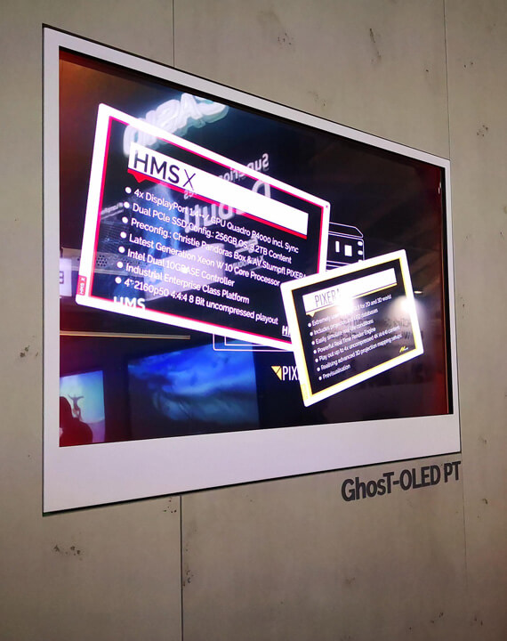 The main component of the POLARIS system is the innovative OLED technology by LG. It offers not only vivid colours and a wide viewing angle, but also an impressive transparency of 38 % - dark image contents appear transparent and bright image contents opaque. This allows objects or even entire rooms behind the panel to be included in the content and set in scene.