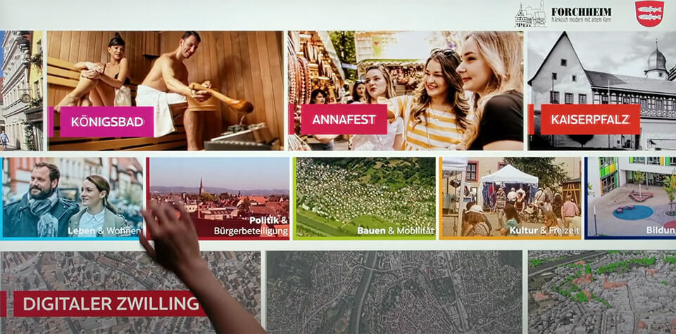 Play Video Videos/Bilder Hintergrund-InfosDie Stadt Forchheim nutzt digitale Zwillinge, um Stadtplanungsprozesse effizienter und transparenter zu gestalten. Mit Unterstützung der eyefactive GmbH setzt die Kommune interaktive Touchscreen-Lösungen ein, die sowohl Bürgerinnen und Bürgern als auch Planenden neue Einblicke und Beteiligungsmöglichkeiten bieten. Dieses Projekt zeigt, wie auch kleinere Städte von der Digitalisierung und neuen Formen des Informationszugangs profitieren können. Digitale Zwillinge ermöglichen es Forchheim, die Flächennutzungsplanung und Stadtentwicklung datenbasiert auszurichten – mit Fokus auf Verkehr, Klima und städtische Grünflächen.